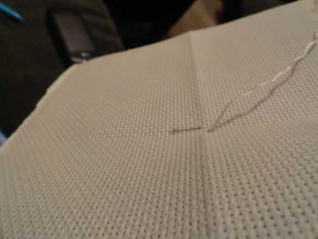 Con cuidado tire del hilo a través del espacio hasta el extremo más lejano de la aguja es un poco más de la mitad de una pulgada de la parte posterior. Asegúrese de que tener suficiente hilo para poner a través de la otra parte de la rosca.