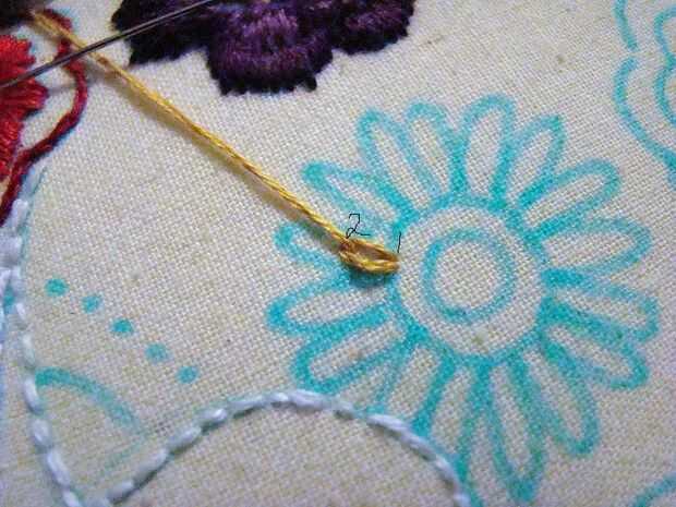 Buho y flores bordados (24 / 29 paso)