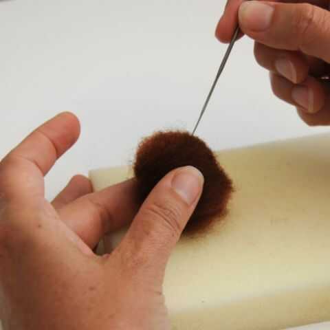 Coloque su bola de lana en la espuma y el fieltro por meter todo su bola, recuerdo ir al centro de la pieza, pero no a través de la aguja. Rodar su pelota como se sentía por todos los lados hasta que esté satisfecho con su forma redonda y es agradable y firme.