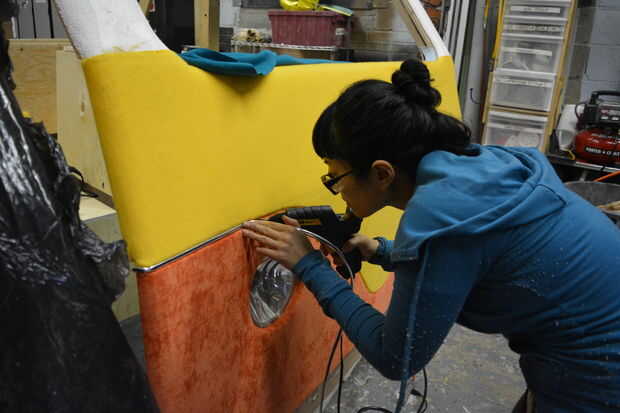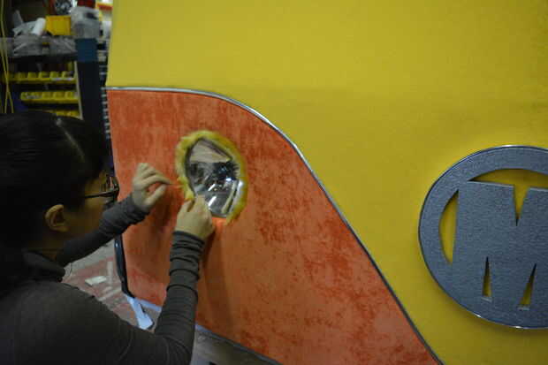 Tina hace las pestañas para que las luces, que eran algunas luces de la lámpara que encontró en un depósito de chatarra. He añadido algunos guarnecido de plata para la insignia de "M".
