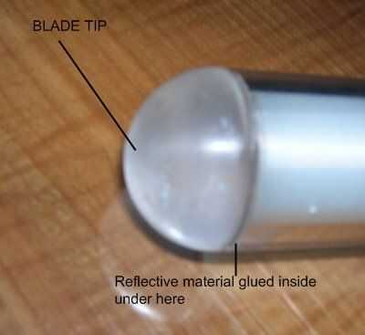 La tapa y el disco reflector ir en el extremo del tubo de la PC. Utilizar una lámina de respaldo adhesivo para el disco reflexivo con un pequeño agujero cortar el centro. Luego se adhieren a la parte inferior de la tapa y pegar la tapa para el tubo de la PC. También puede comprar una bolsa pequeña de espejos redondos surtidos en tu tienda de ocio local. El único problema con el uso de un espejo de cristal es que usted está usando un espejo de vidrio dentro de su disco de duelo. La tapa con el material reflexivo hace dos cosas; darle un extremo redondeado de la hoja y reflejar parte de la luz detrás abajo de la hoja para que sea más brillante.