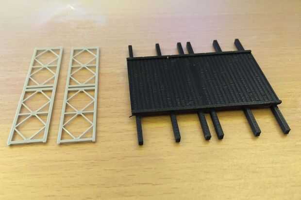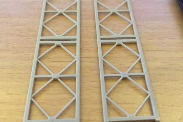 Tenga en cuenta que el panel se imprime con el marco exterior es más gruesa que la interiores barras transversales. Esto refleja la versión de la escala completa y proporciona profundidad al modelo. Dado que estas piezas son 3D impreso, sin embargo, un lado será plano y brillante y el otro lado muestra la variación (véase el cuadro arriba). Este es el caso de los paneles y para el marco de refuerzo utilizado más adelante. En ambos casos se intenta posicionar la parte a ocultar la brillante superficie plana y a mostrar el otro lado.
