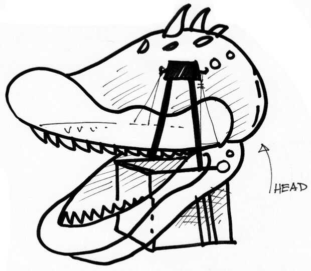 La cabeza sí mismo, superior e inferior de la quijada juntos Unidos y servir como la parte más visible de la marioneta (ahora incluso más grande y más colorida que sus formas anteriores y cresta con espinas).