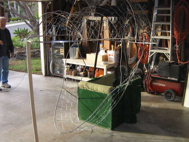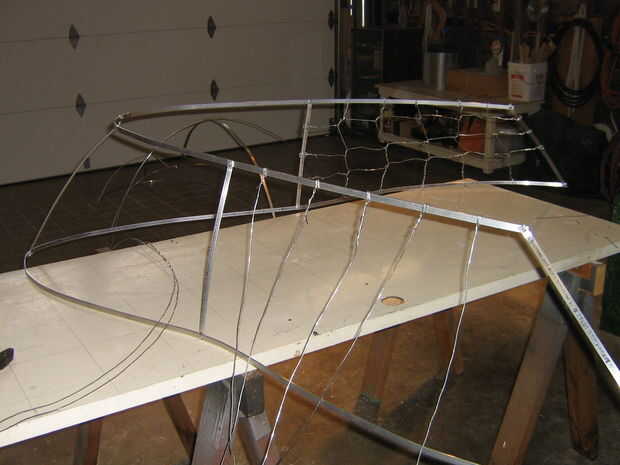 Como antes, barras de aluminio son dobladas a forma de una cuadrícula, perforadas y jodidas, entonces apoyan con una malla tejida de alambre de aluminio.