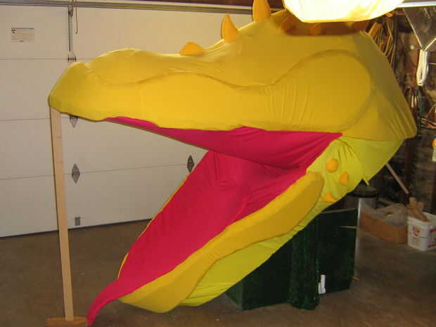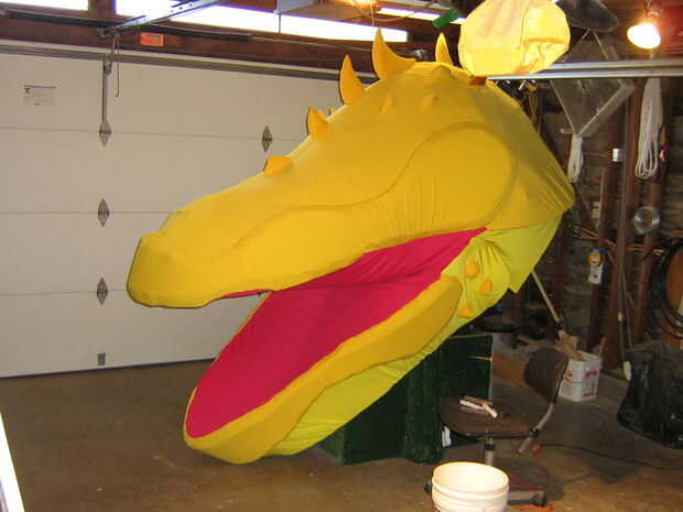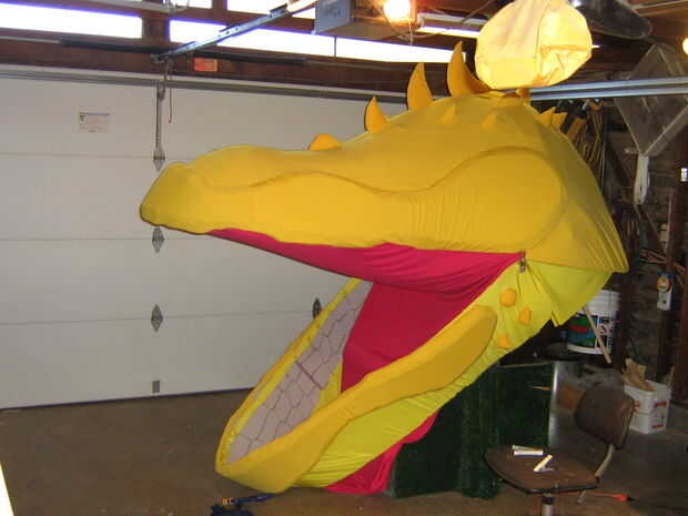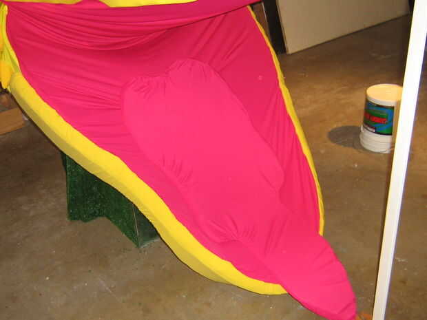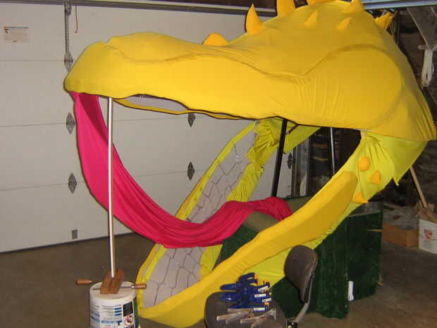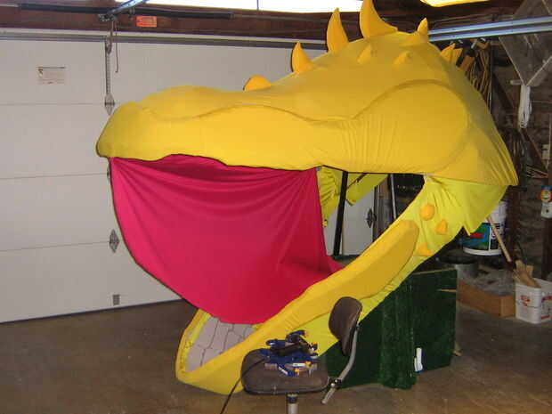 La construcción de boca de fase IV difiere ligeramente de la fase III la lengua ya no es controlada por el titiritero y ella debe ser capaz de tragar la totalidad de actores. La construcción en general sigue siendo similar, como una hoja grande de tela es cortada a la medida y pegada en el inicio en el punto medio del frente de la mandíbula superior y trabajó en el diámetro entero de la boca. Sin embargo, se trata de una sola hoja de material, y cuando, la lengua se adhiere a la ahora 'piel' de la mandíbula y abertura cortada en la parte posterior de la boca para pasar por los actores. Porque el material de la boca es milliskin spandex, no funcionará, y no necesita un borde termina. Esto significa actores pueden ser algo ásperos en ser engullido y la boca llevará a cabo el abuso. Que la ranura se corta va a depender un poco la forma de la boca, pero aquí, debido a la cortina de la tela dentro de la boca, no es visible desde la perspectiva de la audiencia mientras habla. La raja no funciona la amplitud de la boca y es en cambio unos tres pies de ancho (la mandíbula es unos 60" en su punto más ancho).