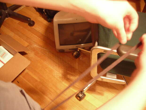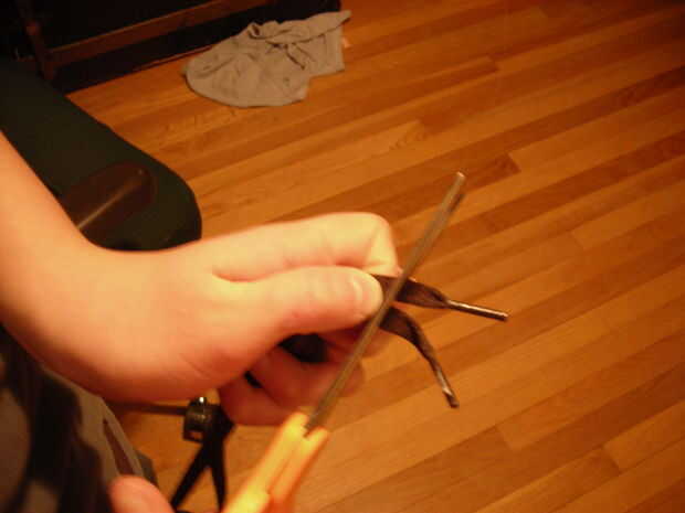 Una vez más, usted tiene opciones de habitación. Puede cortar el juego extra del cordón o dejarlos pendientes, como yo lo hice. Puede cortar las cosas de plástico, o dejarlos. Puede hacer este método con las mangas y collor, o no. Fomentar la creatividad en este proyecto.