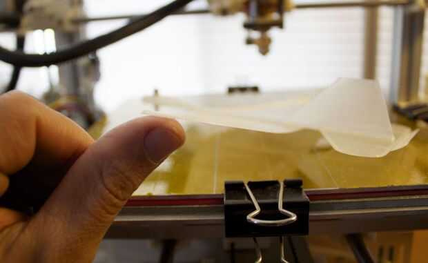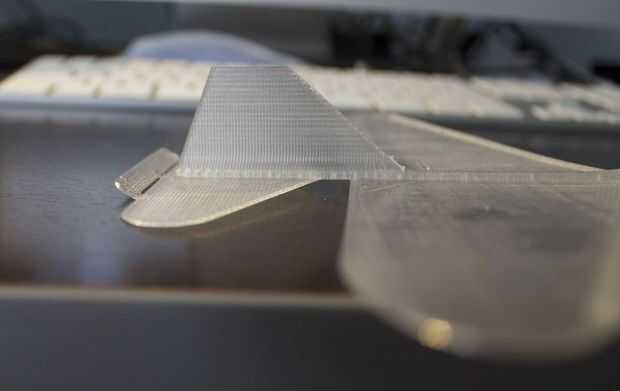 Esta podría ser una impresión fuerte que hacer. Me tomó varios intentos para conseguir una decente primera capa para las alas porque el PLA cutre que tenía era muy inconsistant en espesor... Pero si tu plataforma esté nivelada y su material es bueno, debería funcionar. Altura de la capa debe ajustarse a 0,1 mm con una plataforma muy plana y recomiendo usar PLA para la rigidez. Además, plataforma necesita ser por lo menos 7 x 7 pulgadas para imprimir en tamaño de 100%, no estoy seguro si a trabajar cualquier menor, pero debe trabajar más grande posiblemente.