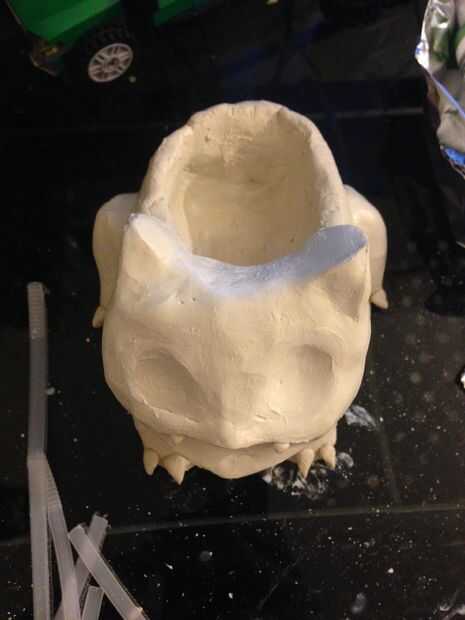 A continuación hice la espalda y las patas delanteras y las tres pequeñas garras en cada pie.
