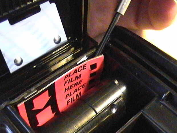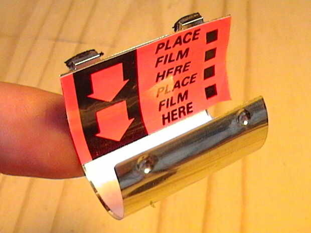 localizar la cámara de suministro de película y sacar los dos tornillos y el tensor de metal. Ponga a un lado.2. Localice el compartimiento de recogida de la película. Levante el tensor metálico y retire cuidadosamente. Tiene una etiqueta anaranjada pegada a él. Ponga a un lado.