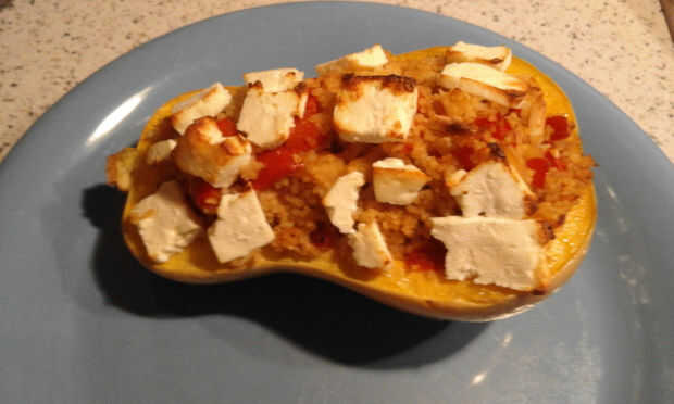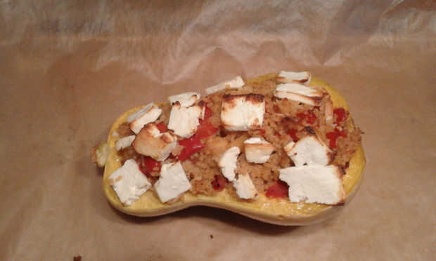 Bulgur lleno de calabaza con queso feta (1 / 6 paso)
