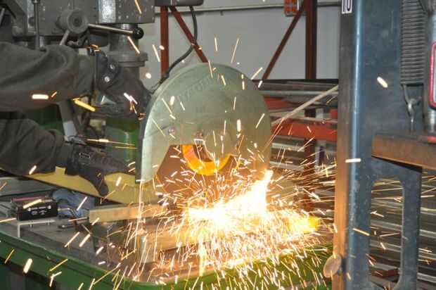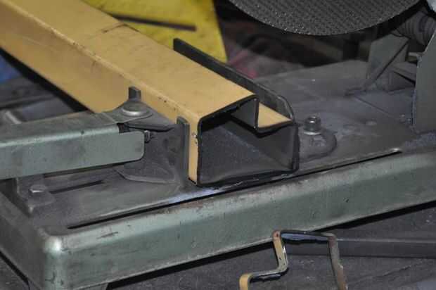 El trasiego se puede cortar fácilmente con una amoladora con disco de corte. Sin embargo, estaba haciendo el corte principal y soldadura en El MAKERSPACE de MILWAUKEE, donde los miembros tienen acceso al espacio y herramientas para trabajar en proyectos, incluyendo una tronzadora de corte de metales. La tronzadora facilita cuadrado cortes en el tormento.