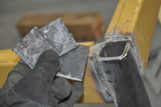 Corté cuatro piezas de placa de desecho en cuadrados de 2 "x 2". Éstos eran cada juego encima de los postes de cuatro esquinas y soldado con autógena en el lugar.