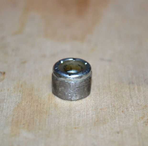 4. Utilice papel de lija más pesado primero como grano 240 o 400 y luego pasar a un grano 800 o 1200 para el alisado final. La tuerca de bloqueo hay un labio en la parte superior, no intenté esto ya que da la tuerca un aspecto más de la "bala" de arena. Tarda un poco más a la arena pero el efecto merece la pena.