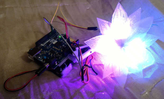 Así que el diagrama para este paso es un diseño de la bufanda/vestido que incluye 1 mecanismo de longitud vinculada a I2C del Arduino 101 y 1 Color atado a la clavija 3 del Arduino 101. Probablemente puede concluir se inicia en el azul larga mirada transforma luego al vestido de té de primavera al hacer girar, vuelve a largo azul si llevas 3 pasos. A 21:00 se apaga.