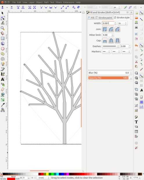 - Haga clic en el número más cercano al color del trazo, esto hará que aparezca el cuadro de diálogo de trazo/relleno en el lado derecho de Inkscape.