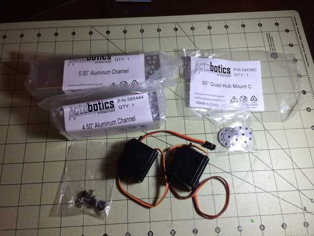 Puede fuente muchas de las piezas de eBay u otros proveedores directamente. Piezas estructurales pueden ser conseguidas de Sparkfun, RobotShop y ServoCity. Servos de rotación continua pueden encontrarse en varios vendedores en eBay, ServoCity, paralaje etc... O usted puede modificar usted mismo 360deg rotación, pero no cubrirá en este Instructable.
