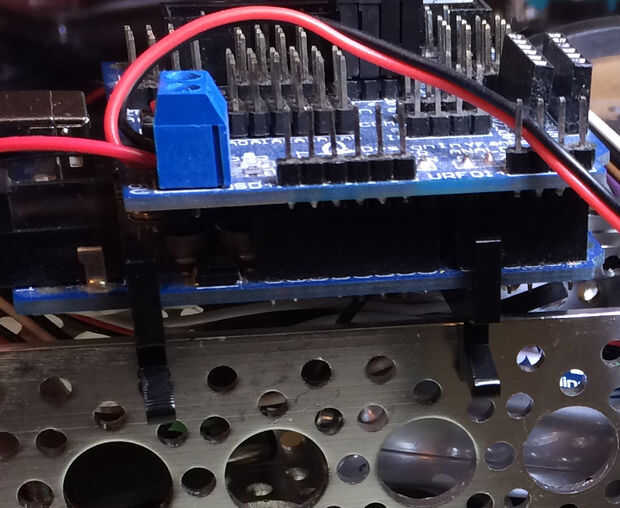 Paso 6: Añadir la Arduino y el escudo en el chasis