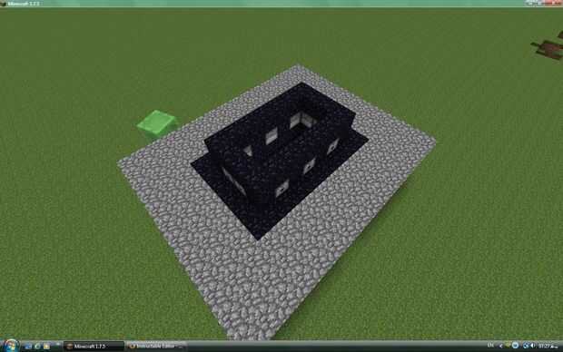 Cráneo de Wither azul tiene una regla, que todos los bloques pero roca tiene solamente resistencia a explosión de 4 contra él. Debido a esto, puede romper de obsidiana! Ahora vamos a utilizar capas de agua y piedra para que sea anti-cae!!!!!!