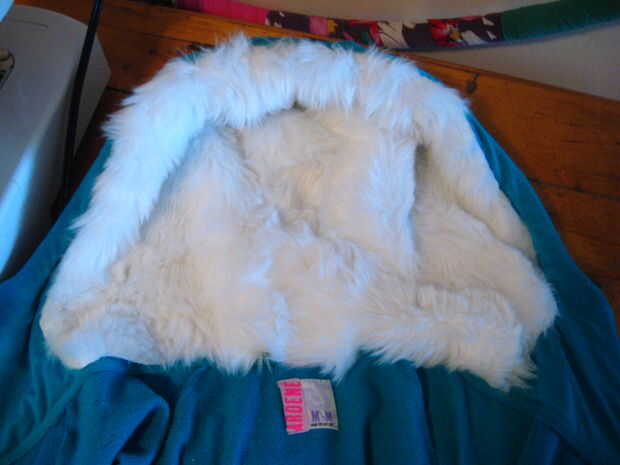 empecé con una sudadera con capucha. El plan es utilizar material extra de la campana para hacer el collar. Yo quitar la cremallera y reemplazarlo con un botón. Pensé en cómo coser botones en la manga y los bolsillos por lo que son las ranuras y más