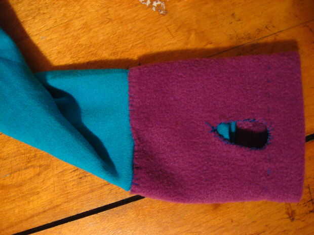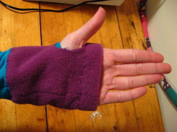 empecé con una sudadera con capucha. El plan es utilizar material extra de la campana para hacer el collar. Yo quitar la cremallera y reemplazarlo con un botón. Pensé en cómo coser botones en la manga y los bolsillos por lo que son las ranuras y más