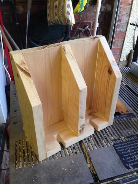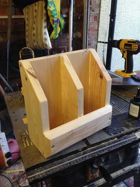 Después de poco de suerte encontrar un cargador para mi necesidades exactas decidí poner a prueba mis habilidades de trabajo madera mediocre y construir mi propio. Quería que montarse en la pared paralela a mi cama (en vez de perpendicular como en un