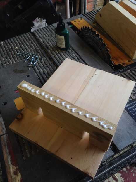 Ahora toda la madera está preparada puede empezar a montar. Usé pegamento de madera junto con los tornillos de 1" para asegurarse de que va a durar. Comenzar con la parte posterior de la titular de la botella e ir desde allí agregar el pegamento y tornillos a medida que avanza. Fácil. Una vez montada y cuando el pegamento esté seco se puede lijar hacia abajo los bordes ásperos. Mina le di una rápida frotación hacia abajo con un bloque y algunas lijas como mi hermano tenía la lijadora eléctrica. Una vez que tengo que en mi poder te voy a dar es una vez.