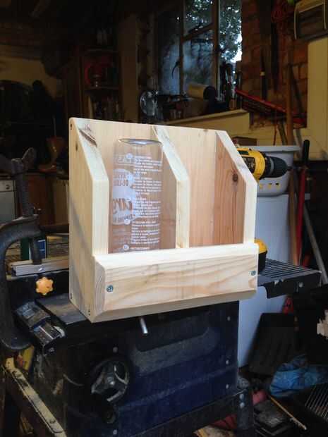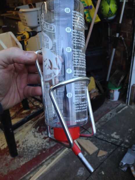 Al final de este construido también por accidente descubrí una solución mucho más fácil y rápida a las botellas dentro de la estantería de montaje. Un sostenedor de botella de la bici!!!! No dude en usarlo demasiado. Es más rápida pero mucho menos divertido.