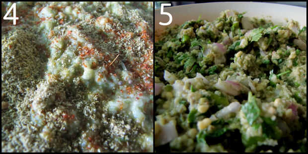 - Ahora agregue cilantro seco, sal y pimentón en polvo y polvo de la asafétida en la mezcla (Ver imagen 4)