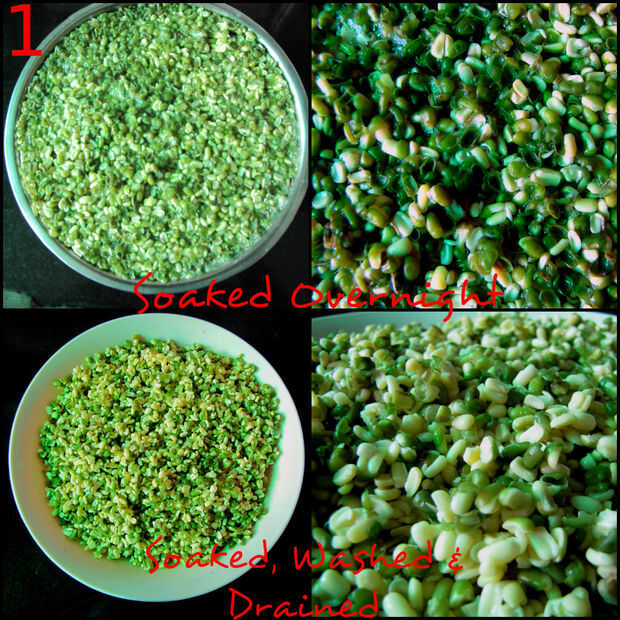 - Tomar un puñado de habas remojadas y mantenerlas separadas. (Esto hará que el moongodas más crujiente).