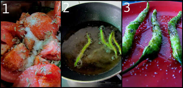 - Fría los chiles verdes 4-5 hasta que se vuelvan amarillentas (Ver imagen 2)