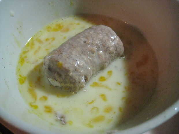 5. Coloque el plátano a la mezcla de huevo y cubra bien.