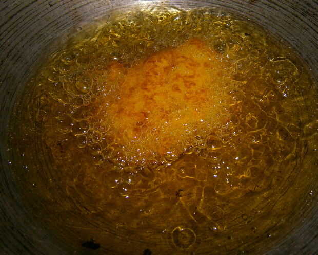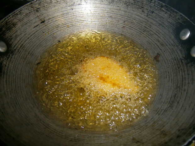 Calentar el aceite en una cacerola mediana y colocar una cucharada de la mezcla en el aceite caliente. Freír cucharadas de la mezcla hasta que doren y cocido, aproximadamente 2-3 minutos. Freír de un lado hasta que estén doradas y vuelta para cocinar del otro lado.
