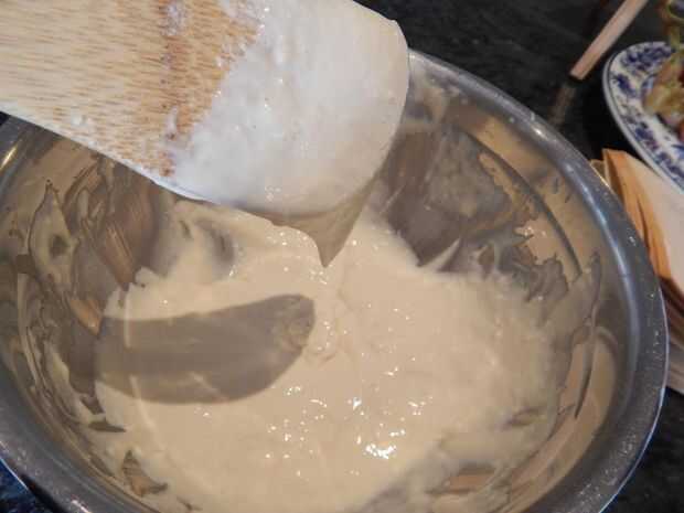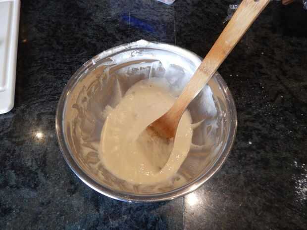 • Hacer un pozo en el centro de la harina y poco a poco agregar la leche removiendo con una cuchara de madera (no sé por qué tiene que ser madera - solo hace. OK.) hasta que quede suave. Use suficiente leche para hacer la masa líquida, pero pegajoso para pegarse a los pedacitos de carne.