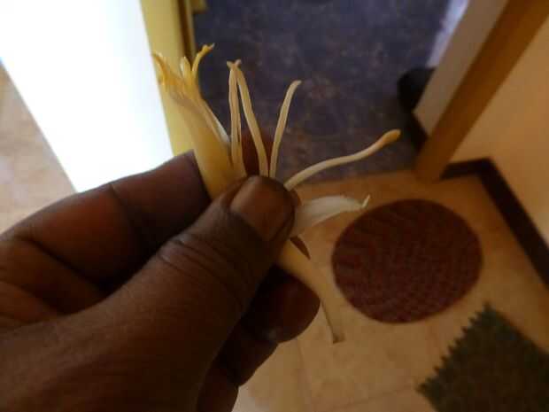 Debo han utilizado aceite en mis manos. Mis dedos consiguieran manchados durante la manipulación de la flor de plátano y puede tomar un tiempo para irse.