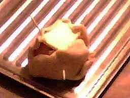 Opción camping: Cueza al horno en una olla de hierro fundido de 14 pulgadas de diámetro. Organizar 40 briquetas de carbón al rojo vivo en un círculo en la tapa, coloca cuidadosamente al lado del borde levantado de la llanta y briquetas de carbón al rojo vivo 17 bajo, cuidadosamente dispuestas en un círculo, justo bajo el borde redondo del horno. Hornear durante unos 35 minutos, comprobar de vez en cuando.
