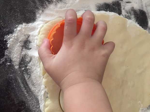 Con un cortador bien enharinado, cortar tantos donuts como puedo (yo solo uso 1 grande y 1 pequeño cortador de galletas para ello), entonces se reúnen los desechos prensa/amasa en una pasta suave (sin agregar mucho más harina) y recortar tantos donuts como pueda otra vez.