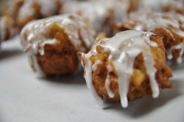 el otro día haciendo donas de Krispy Kreme en la oficina, me encontré con un bote grande de aceite y algunos ingredientes sobrantes. Además de algunas manzanas de hacer sidra me inspiraban a intentar mi mano en buñuelos de manzana! (Ok, por lo que