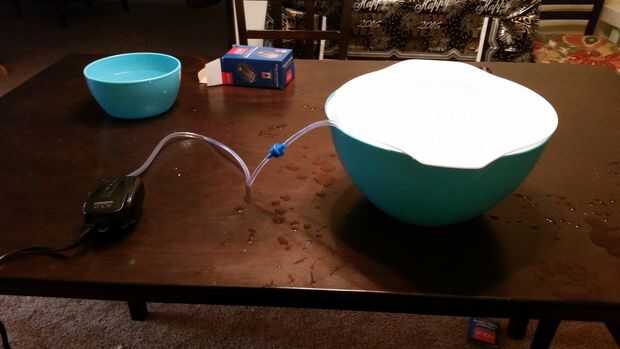 La válvula y había marcado. Siga los rótulos para conectar el tubo de aire de la bomba a la válvula. Luego conecte la válvula a la tubería adicional que continuará en el recipiente.