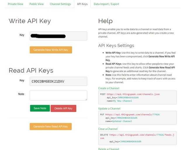 • Tome nota de que Write API Key y la clave de la Read API para este canal
