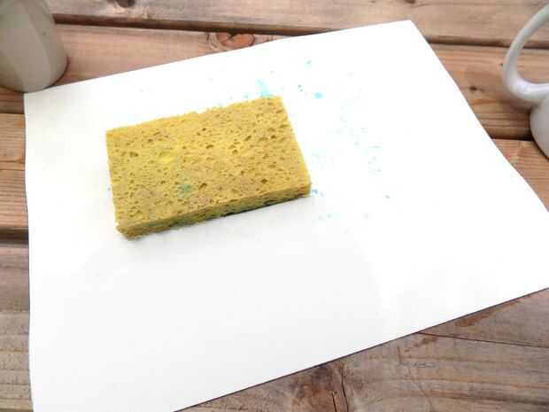 Humedezca el papel con una esponja. No quiere que ser empapado, pero debe estar lo suficientemente húmeda para absorber la pintura. Esto puede tomar un poco de ensayo y error, pero no me tomó mucho en averiguar la cantidad adecuada.