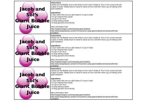 Hice el jugo según instrucciones y receta de http://happyhooligans.ca/homemade-giant-bubbles/ .