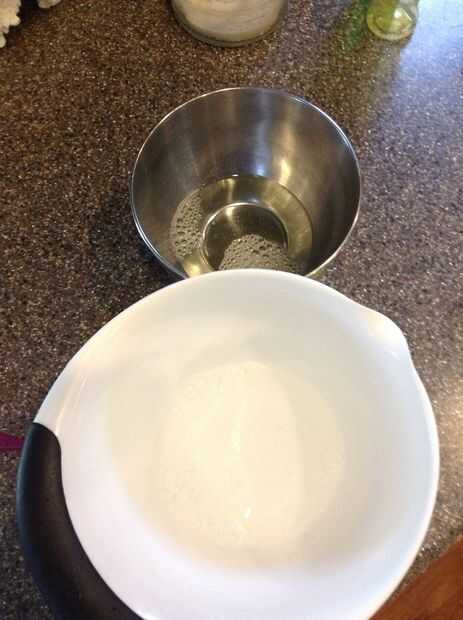 Vierta la mezcla de burbuja en un recipiente.
