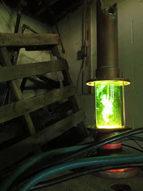 En este punto la lámpara se hace básicamente, enciende para arriba, burbujas y está prácticamente listo para funcionar. La izquierda lo único que hacer era agregar algunos detalles estéticos en forma de óxidos de cobre y la corrosión. Estos toques fueron aplicados mediante la mezcla de blanco de titanio y pinturas acrílicas verde y son Supongamos que a la luz un aspecto más envejecido y cáustico, que lo había sido en algún laboratorio expuesto a toda clase de productos químicos. Aplicar la pintura para que parecía de óxido de cobre real fue un poco complicado y después de algún ensayo y error, que descubrí que los más realistas efectos de cepillado en ligeramente alrededor de las costuras y en áreas donde se encuentran las cosas, como las tuercas y arandelas que aseguran el hilo de todo encuentran de las bridas de PVC. Como regla general, menos es probablemente el camino a seguir con este proceso, si la pintura a gran parte del "óxido de cobre" las cosas pueden empezar a mirar un poco falso así que Tómese su tiempo y paso detrás a menudo para evaluar su trabajo.