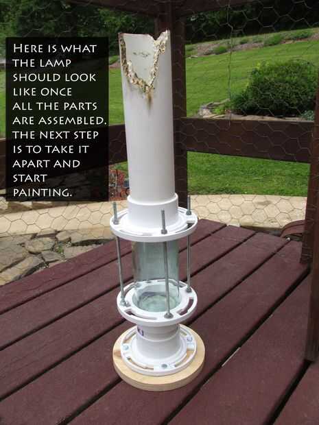 Una vez que estás satisfecho con el aspecto de la lámpara que necesita desmontarla como siguiente paso es pintar la lámpara que se parece más a tubería de cobre antiguo y menos como el PVC.