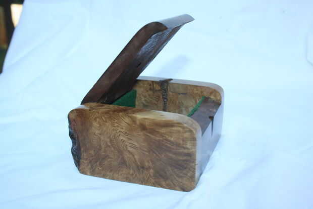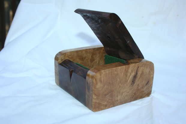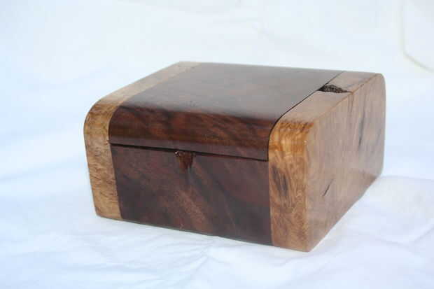 Bien lo dijo "En este concurso de madera, queremos que nos muestre qué magia se puede crear con un trozo de madera" por lo que es lo que hizo. Un par de años mientras se preguntaba hacia fuera en el bosque encontré un árbol de madera de perro con un burl pequeño cerca de su base y desde el árbol estaba casi muerto tengo mi sierra y corte del burl. No tengo una foto de ella en el árbol pero lo tomé un par después de resawed en la sierra. Aplanó la madera hacia fuera solamente con una lijadora de banda de 6" cortar la caja con mi sierra pegados juntos entonces formado totalmente por ojo usando la lijadora de banda. Distinto a la espera de la cola y el acabado se seque tomó cerca de 2 horas para hacer.
