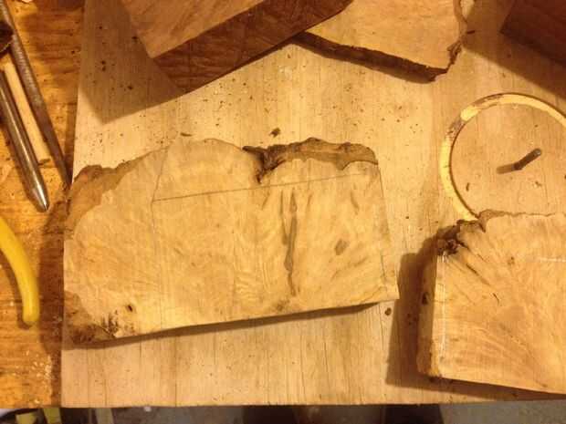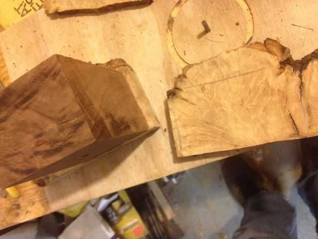Había resawed el burl hace unos dos años y deje que se seque. He elegido las 2 tablas y utiliza un poco de nuez derecho tenía para el centro. Nivelación de los lados con la lijadora de banda hasta que se adaptan bastante bien a la nuez.