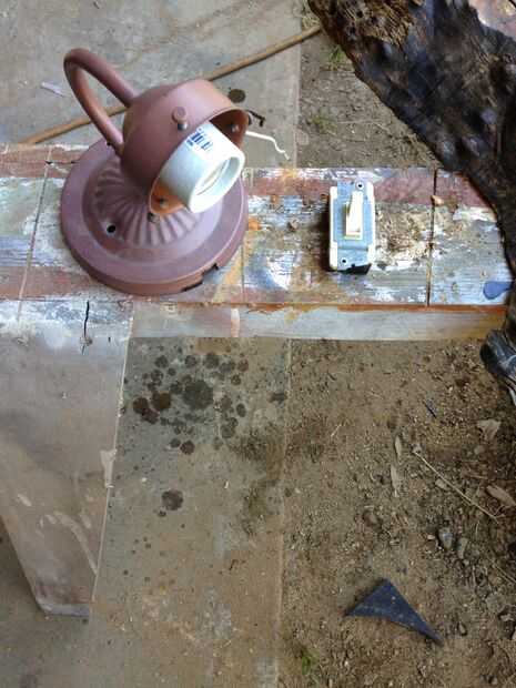Fui alrededor de la finca en busca de cosas que podría utilizar para construir dicha tabla y soporte de luz.