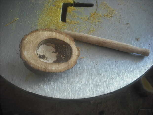 Usando tu gubiado excavar el centro más suave de la burl a la profundidad deseada. ) He engañado y perforó un piloto primero en algunos de los burls más difíciles.)