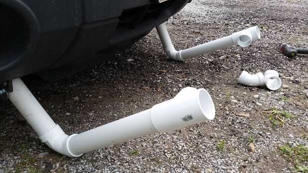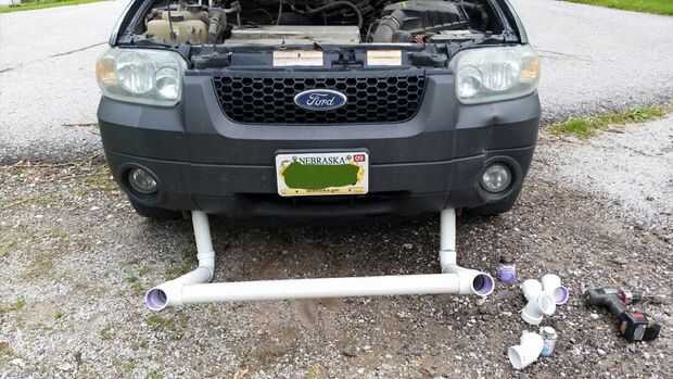 Taladré un agujero en el tubo de PVC y a dedo apretado el perno a través de él y el metal con un agujero que encontré debajo del coche.