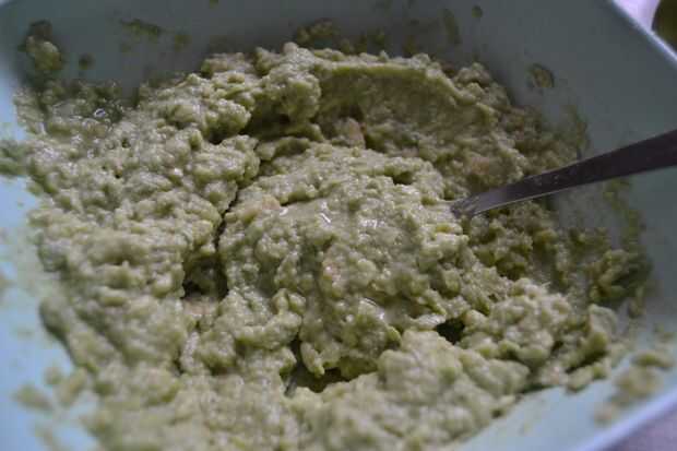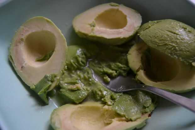 Apriete el lime(s), poner el jugo en un cuenco. sacar el aguacate de la cáscara en el bol y con un tenedor, triture en una pasta uniforme.